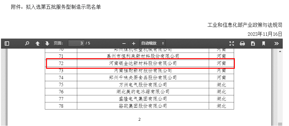 近日,國家工業和信息化部公示了第五批服務型制造示范名單,河南銀金達新材料股份有限公司獲評國家級服務型制造示范企業。新材料公司于2022年入選“河南省服務型制造示范企業”,此次獲評是對銀金達“產品+服務+技術”綜合解決方案的再次肯定。